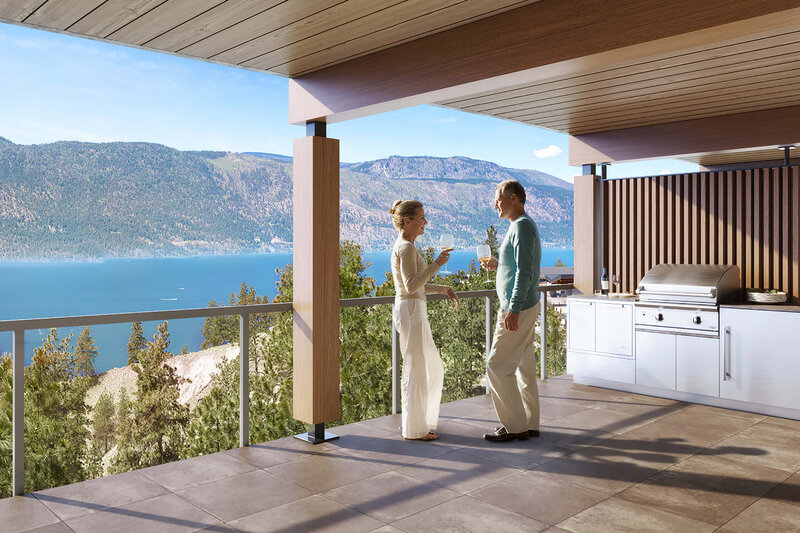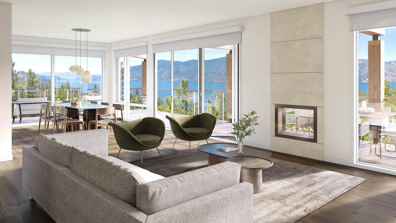 Close to both the airport and downtown Kelowna, Zara gives you an easy home base for exploring the Okanagan. Each space features floor-to-ceiling windows, a chef-inspired kitchen, a wine bar, and plenty of room to relax indoors or out.